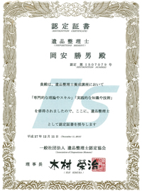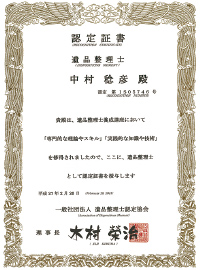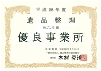 一般社団法人、遺品整理士認定協会認定、地域統括会員の遺品整理士がおりますので安心してお任せ下さい。